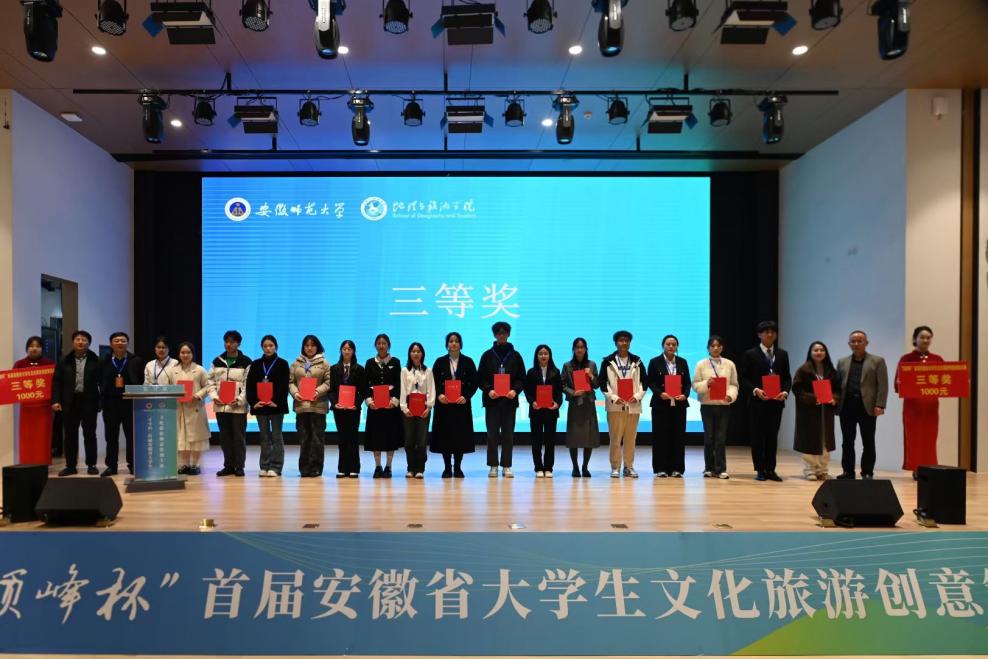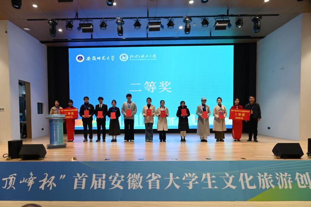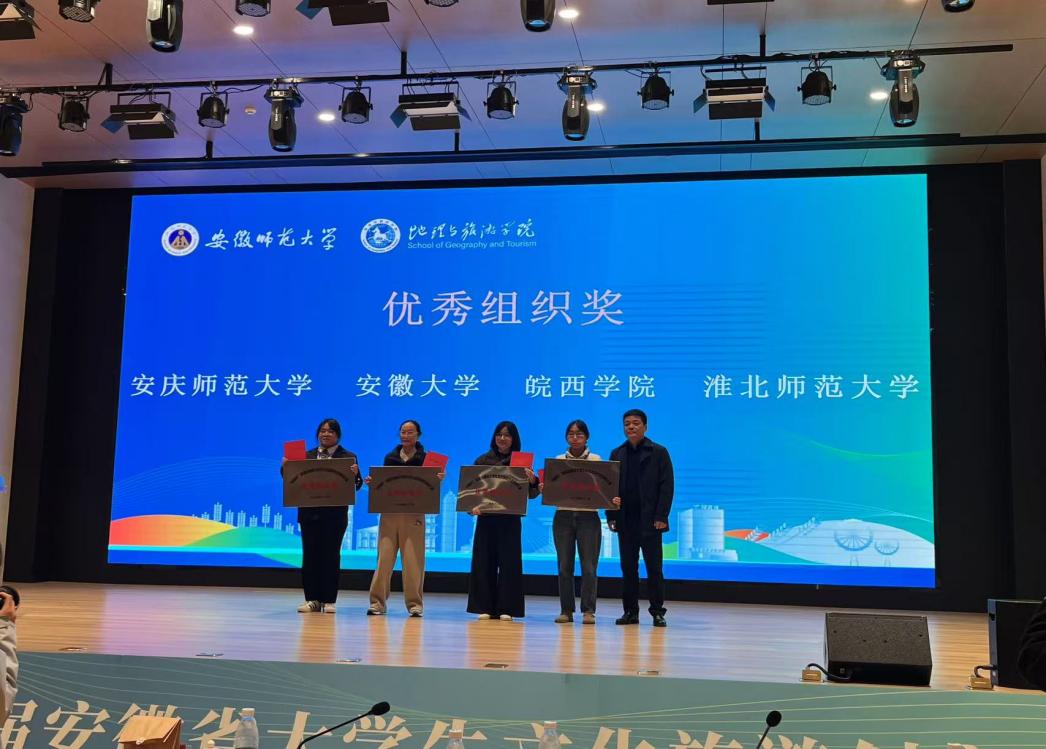 自比赛启动以来,我院高度重视,积极动员师生广泛参与,经过赛方评委打分、专家复审等环节层层选拔,我院共5项作品从全省百余件作品中脱颖而出,进入决赛。决赛准备阶段,学院副院长朱磊和各位参赛指导老师对学生参赛作品反复认真打磨和现场模拟汇报,营造了浓厚的比赛氛围,提升了学生竞赛水平,为学生在比赛中取得优异成绩奠定了基础。最终,经过现场的激烈角逐,安庆师范大学资源环境学院旅游管理专业师生团队荣获二等奖2项、三等奖3项、最佳风采奖2项,同时安庆师范大学荣获优秀组织奖。获奖等级和数量均位居全省前列。