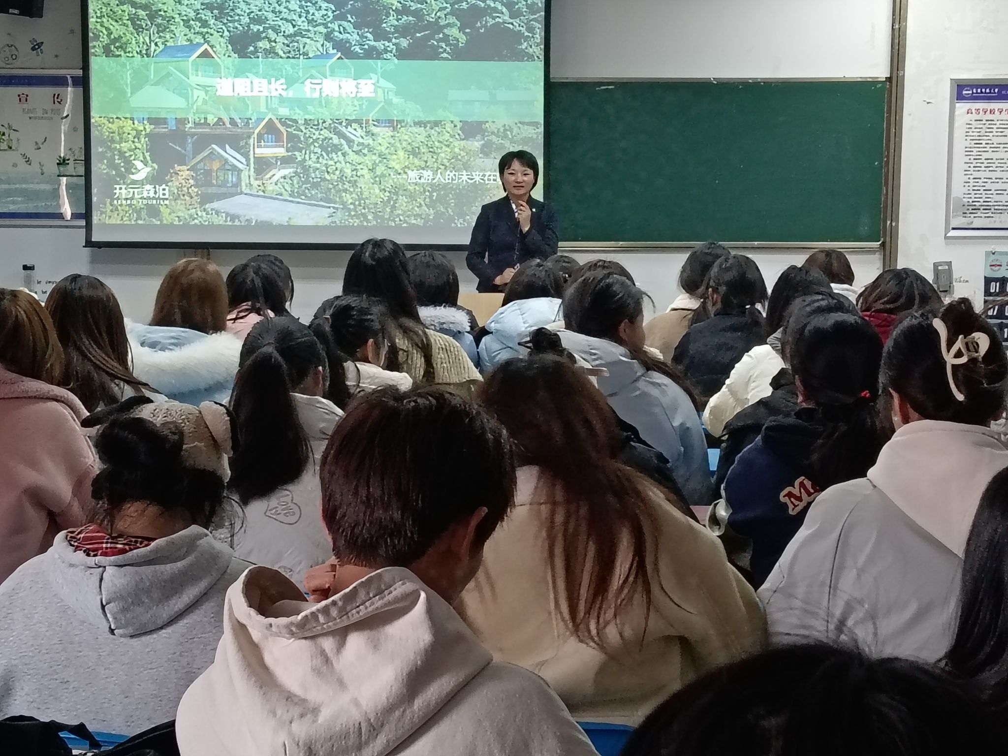 为助力广大学子明晰未来方向,汲取前行力量,近日资源环境学院在F204教室开展优秀校友经验分享会,副院长朱磊主持会议。此次分享会特邀2018届旅游管理专业优秀毕业生,现任杭州开元森泊旅游投资有限公司人力资源经理吴燕女士担任主讲,以“道阻且长,行则将至—旅游人的未来在哪里”为主题,为2024级新生带来了一场精彩纷呈的成长导航课。