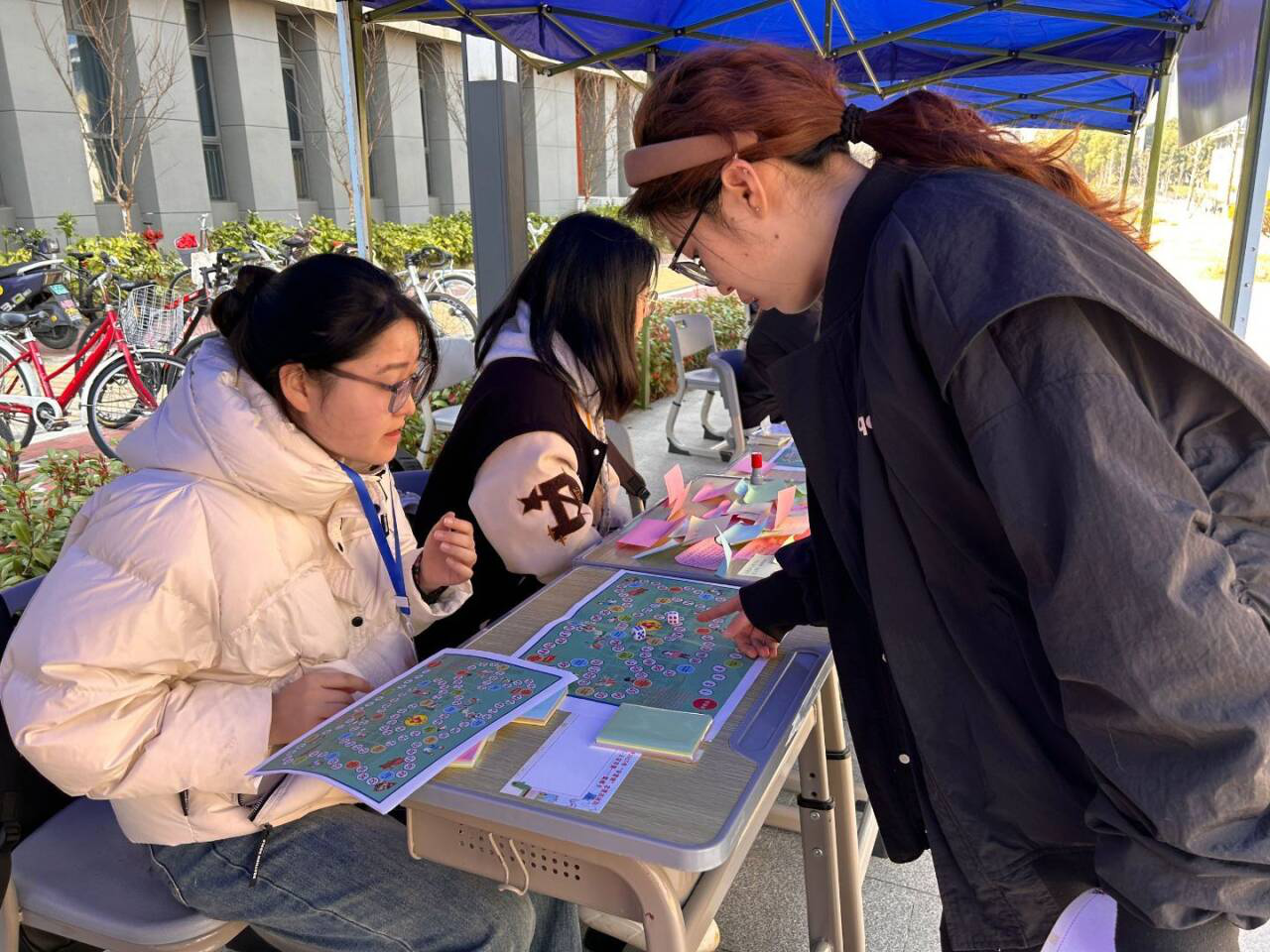 活动当天一早,红太阳志愿者服务团的部员便着手场地准备工作,从展棚搭建到道具摆放,从标语悬挂到区域划分,每个环节都凝聚着团队的用心。活动现场吸引众多师生驻足,他们纷纷询问活动背景,了解活动流程,现场参与氛围浓厚。本次活动包括两个环节,参与活动的同学可以选择写便签或者进行“雷锋”大富翁游戏。在便签书写环节,学生们可以写下他们对雷锋精神的感想,或是他们曾遇到的好人好事,亦或是他们了解到的雷锋名言。学生们纷纷写下自己心中的雷锋形象。有人说他是“人们的榜样”,有人说他是“人民的好战士”……一言一语无不体现同学们对雷锋同志的敬佩。也有同学写下雷锋的名言警句“我愿永远做一个螺丝钉”“人的生命是有限的,可是,为人民服务是无限的,我要把有限的生命,投入到无限的为人民服务之中去”……每句话都催人奋进,使人鼓舞。