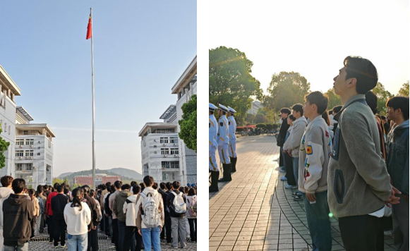 “当国旗升起,爱国之情油然而生。作为新时代大学生,我深感责任重大。未来求学道路中,我们应当秉持勤学笃行、自强不息的态度,将专业知识与国家现实需求紧密结合,在新征程道路上交上一份满意的答卷。”2023级环境科学(1)班的彭欣月说道。
