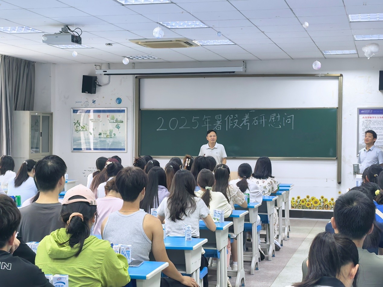 会上,夏斐代表资源环境学院向留校学子送上关怀与鼓励。他肯定同学们留校钻研、逐梦前行的决心与行动,赞扬大家不畏酷暑、专注学习的坚韧品质,强调这是学院优良学风薪火相传的重要源泉。他叮嘱同学们,复习冲刺阶段要将身心健康放在首位,科学规划作息,劳逸结合,以最佳状态投入学习;勉励大家坚定信念,把备考挑战作为成长阶梯,保持定力、稳扎稳打,并预祝全体同学考场告捷、金榜题名。