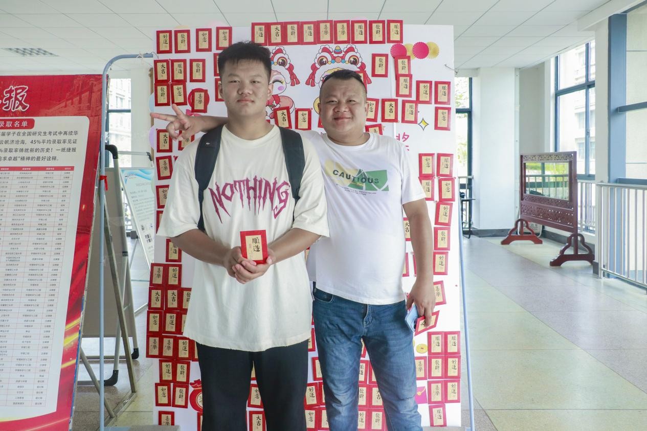 “我在新生群里看到了活动消息,请问这里有‘红包’抽奖吗?”地理科学专业2025(1)班的王佳雪在家人的陪伴下“慕名”而来,抽中了奖品荧光笔。在“红包墙”下,旅游管理专业2024(2)班的刘子洁为王佳雪一家拍摄了合照,留下了她入学的第一张照片。“报名点、服务站的志愿者都特别有耐心,带给我满满的安全感和归属感。”谈及入学感受,王佳雪直言,她对未来大学生活充满憧憬,期待尽快适应校园生活,在新环境中充实自我。