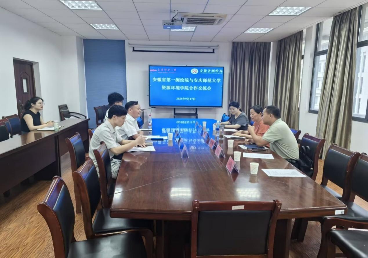 2025年9月17日,省第一测绘院副院长潘宏带队,与安庆市自然资源规划局一行来我校资源环境学院开展自然资源智慧调查技术和科普宣讲演练活动。学院党委书记夏斐以及地理教研室教师代表一起参加了交流座谈。