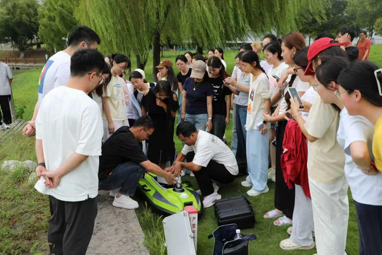 这一创新性的实践形式极大地激发了同学们的参与热情,同学们踊跃上前,将专家们“团团围住”,争先恐后地就设备原理、操作细节和应用场景提问交流,纷纷要求亲自上手操控无人船遥控器,期待能将刚才所学的理论方法付诸实践。2023级地理科学专业学生卞晓云在成功完成一段航线任务后兴奋地表示:“以前只在课本和视频里看过无人船测绘,今天不仅能亲手触摸、亲自操作,还能实时看到它传回的水下地形数据,这种感觉太震撼了!这让我对自己所学的专业前景充满了信心和向往。”
