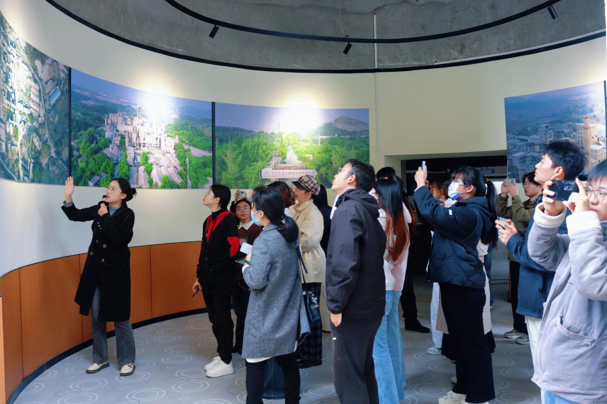10月21日,师生们继续前往“集贤时空”工业遗址开展第二场见习活动。这个由原白鳍豚水泥厂改造而成的文化园区,展现了工业遗产保护与生态环境修复的完美结合。在园区内,同学们依次参观了“画境主景区”、“时空仓”、“集贤关根雕馆”等特色区域,深入了解工业遗址改造过程中的生态修复技术、景观规划方法和低碳建设理念。特别值得一提的是,园区内“空中艺术走廊”的设计巧妙连接了各个工业遗存,而“思想之泉”等景观则生动体现了工业元素与生态理念的融合,为同学们提供了工业遗址环境规划的鲜活案例。