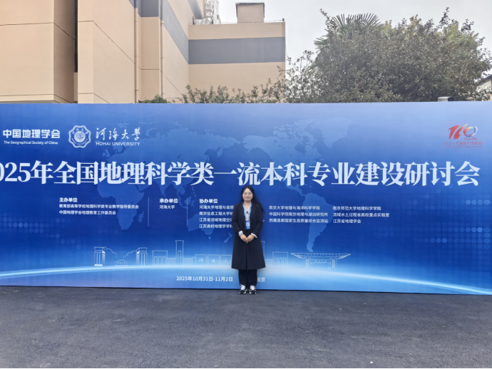 2025年10月31日至11月2日,教育部高等学校地理科学类专业教学指导委员会与中国地理学会在南京河海大学联合举办“2025年全国地理科学类一流本科专业建设研讨会”。我校资源环境学院教师应邀参会。