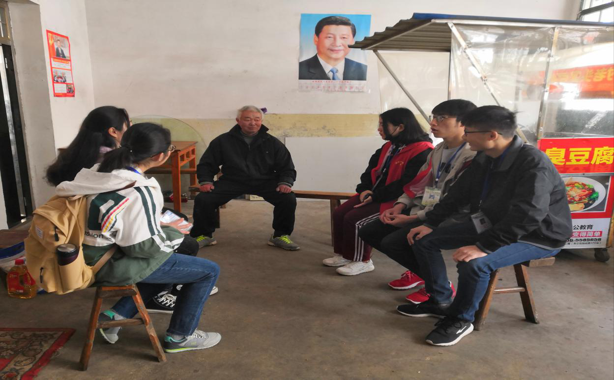 活动当天,志愿者们在社区工作人员的带领下,来到一位贫困老人家中。老人看到这么多同学们来看望自己,感觉十分高兴和感动,拉着同学们的手深切的说道:“现在生活越来越好了,政府对我的帮助很大,前两年自从有了炸臭豆腐的小生意,每天都有收入。忙的时候也有女儿的帮忙,我也不觉得累。”