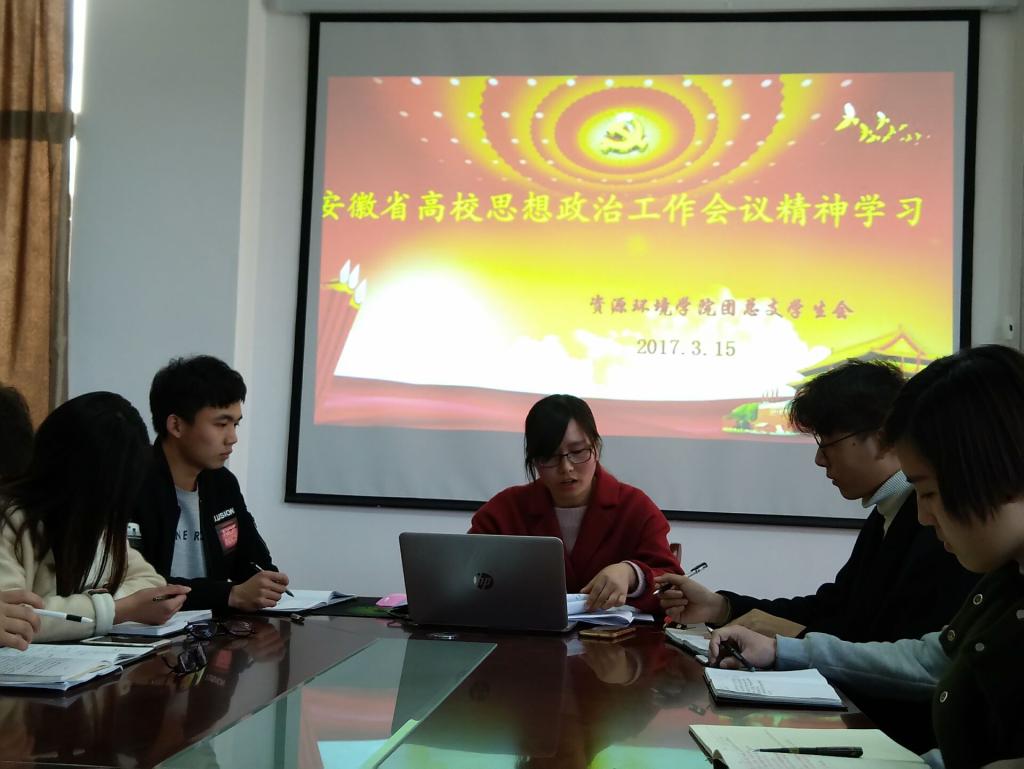 3月15日下午,我院团总支于F315会议室开展安徽省高校思想政治工作会议精神学习会,会议由我院团总支负责人程亚运老师主持,学生会各部门成员参加本次会议。