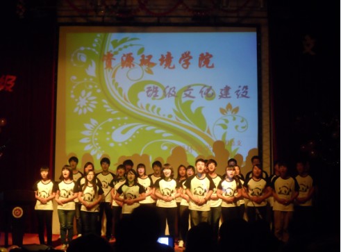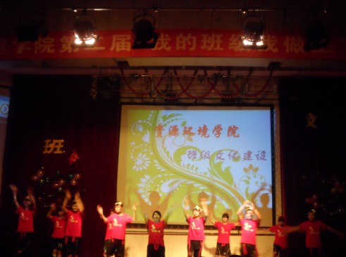 比赛在该院舞蹈队精彩的开场舞中拉开了帷幕,比赛共分为两个环节:歌我青春---PPT展示班级主题、口号、徽章、旗帜和演唱班歌;绽我活力---班级才艺表演。在第一个环节中,各班级代表通过PPT向现场观众展示了班级口号、班徽和班旗等特色班级文化,并简要地介绍其设计思路及其涵义。参赛班级主题鲜明,内容积极向上;班徽设计各具特色,有的简洁大方,有的充满灵气和美感;班级口号既与班级主题相呼应,又能与专业特点相关。在班歌演唱环节中,同学们用青春洋溢的歌喉将对班级的热爱和对未来的向往表现地凌厉精致,《我的未来不是梦》、《我相信我们会创造奇迹》、《梦的怒放》……,尤其是2011级旅游管理1班《梦想曲》和2011级地理科学2班的《地理2班的日子》两首原创歌曲,更是赢得了现场观众的高度认可。在班级才艺表演环节中,各种风格的表演轮番上阵,给现场观众带来了一场视听盛宴。每一个表演都传递着同学们深厚的友谊,每一个表演都凝聚着对班级的热爱!其中,小品《三世同堂》、舞蹈《江南style》等节目搞笑连连,赢得观众阵阵掌声;2011级旅游管理四班的《安庆版春节联欢晚会》将各种形式的表演串联在一起,high翻了全场;2012级地理科学一班30人集体竖笛演奏,清扬委婉的笛声带给观众以深刻的印象;还有恶搞版广播体操等节目,将现场一次次推向高潮。