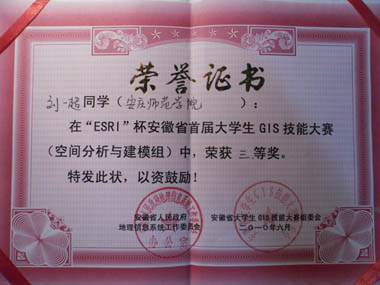 历时两个月,由安徽省人民政府地理信息系统(GIS)工作委员会主办,安徽省地理信息中心和美国ESRI公司承办的“ESRI”杯安徽省首届大学生GIS技能大赛,于2010年6月13日顺利落下帷幕。