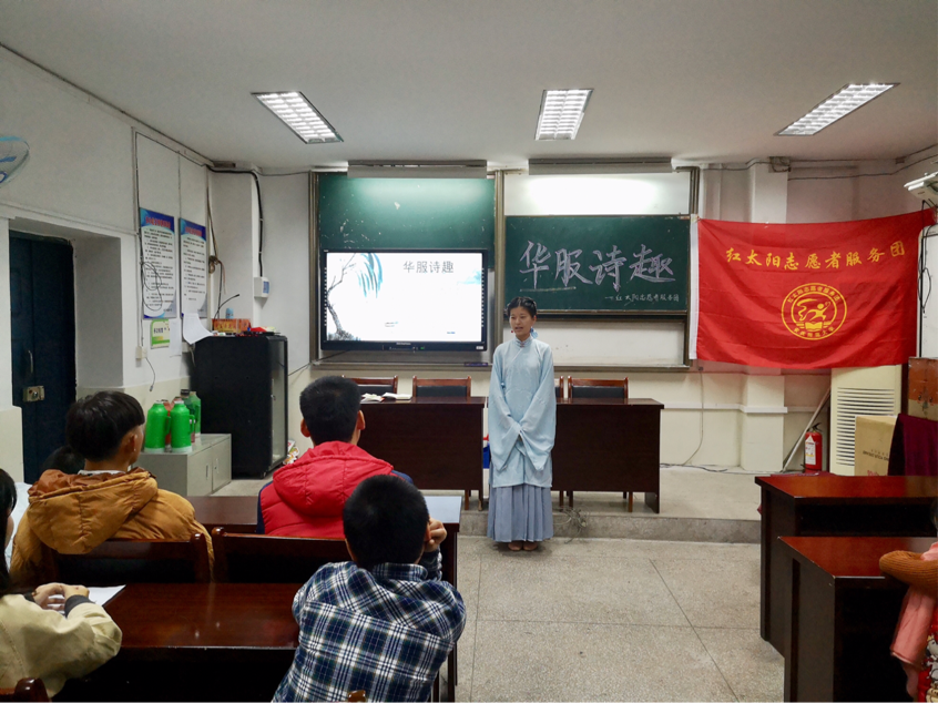儒裙霓裳秀龙纹,曲裾轻舞炎黄魂。一袭汉服笔墨下,千古华夏真魂存。 11月14日,我院红太阳志愿者服务团前往依泽小学,和孩子们一起“穿越时空”,领略汉服之美和诗词之趣。