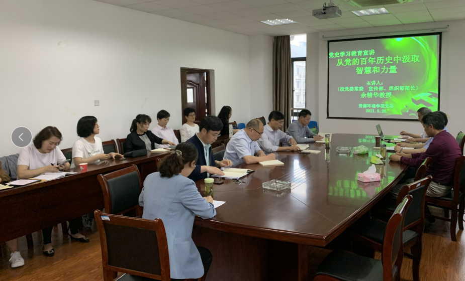 为全面贯彻校党委关于开展党史学习教育的安排部署,进一步推进党史学习教育走深走实,5月26日下午,资源环境学院举办党史学习教育宣讲会,邀请校党委常委、宣传部部长、组织部部长余精华为学院全体教工党员作了一场“从党的百年历史中汲取智慧和力量”宣讲报告,学院班子全体成员、全体教职工党员共同聆听了本场报告,学院党委书记夏宏宇主持报告会。