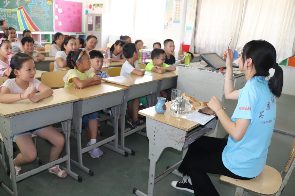 “寒夜客来茶当酒,竹炉汤沸火初红...”中国的茶艺术,起源久远,历史悠久,文化底蕴丰富。为传承中国经典茶艺文化,7月22日下午,安庆师范大学资源环境学院与教师教育学院联合组织的“心手相牵,阳光童行”志愿者在安庆市大观区十里中心学校开展了茶艺文化活动。