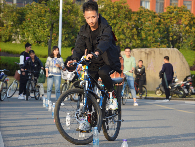 11月8日,学院在校龙山校区南门操场举办了第六届“Riding Man”活动。活动将20名参赛者分成十组,每组由一男一女两人组成。