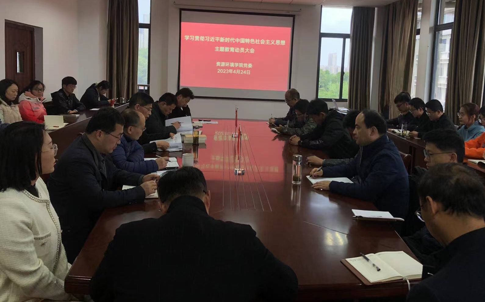 4月24日下午,资源环境学院于F414会议室召开学习贯彻习近平新时代中国特色社会主义思想主题教育动员会,学院党委书记夏宏宇主持会议并作动员讲话,全体教师党员及学生党员代表参加。