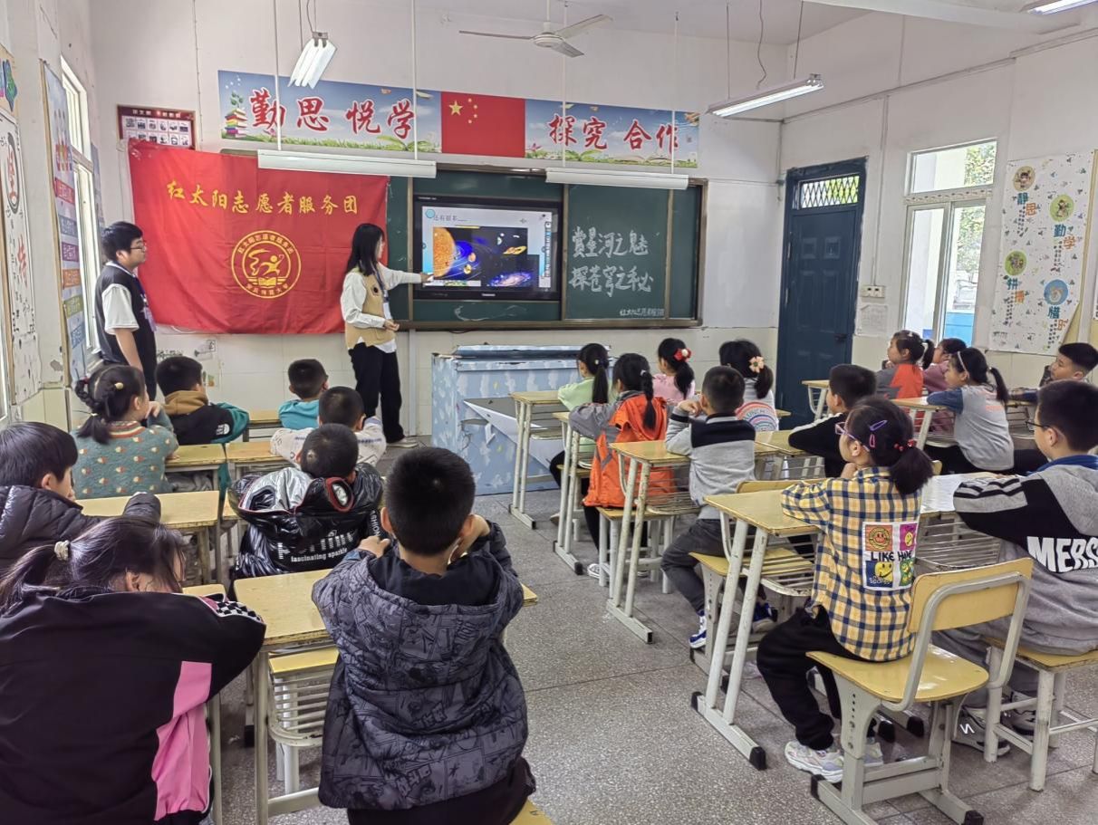 4月26日,资源环境学院红太阳志愿者服务团赴依泽小学开展“赏星河之魅,探苍穹之秘”主题活动,旨在加强学生对星球的了解,激发孩子们探索宇宙奥秘的兴趣。
