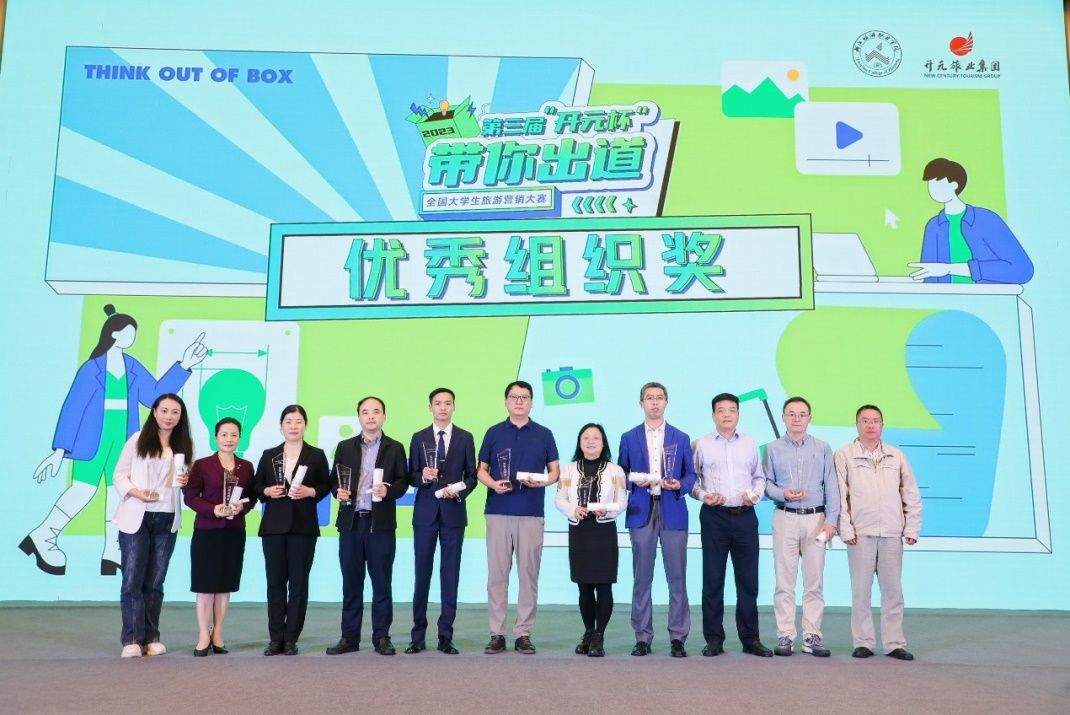 11月3日,在杭州举办的“全国大学生旅游营销大赛”中,资源环境学院朱磊和徐佳慧老师指导旅游管理专业学生戴冕、戴书奎、吴冬等组成的“宜旅光”队在全国百所院校170多个作品中脱颖而出,喜获全国大学生旅游营销大赛三等奖,其中戴冕同学被评为“最佳推荐官”,我校被大赛组委会授予“优秀组织奖”,两位老师获得最佳指导老师称号。