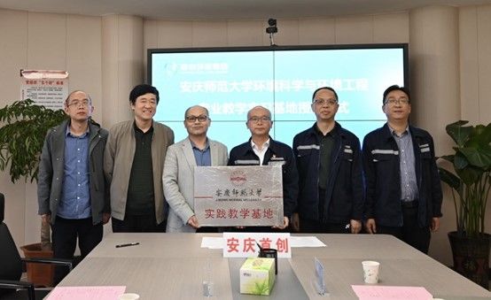 近日,资源环境学院院长汪德进一行赴安庆首创水务有限公司举行实践教学基地授牌仪式并签署深化产教融合基地建设协议。安庆首创水务有限公司党支部书记兼总经理江正兵等参加活动。