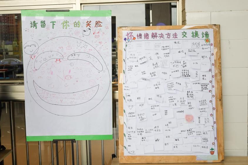筹划活动内容、收集学生意见、沟通活动场地……地理科学专业2022(3)班的吴丹介绍,活动从雏形到最终展现,她和团队成员历时半余月。“本次活动由‘留下你的笑脸’和‘坏情绪解决方法交换墙’两部分组成,学生们可将笑脸画在笑容墙上,同时也能将自身调节情绪的解忧方法写下粘贴在烦恼交换墙上。”介绍完活动流程,在场学生便开始了自己的“创作”。