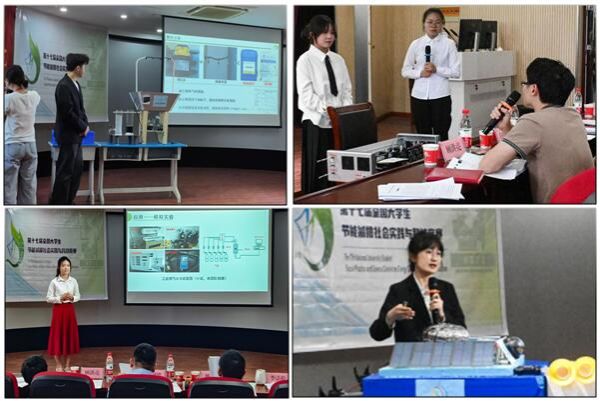本届比赛的主题为“节能减排,绿色能源”,参赛作品分为社会实践调查报告类与科技作品类。此次选拔赛由参赛队伍汇报展示与评委提问点评两个环节组成,每个团队需派出两名学生代表依次进行汇报。在答辩现场,各参赛团队以PPT展示为主,结合视频动画、实验模拟等形式进行汇报。