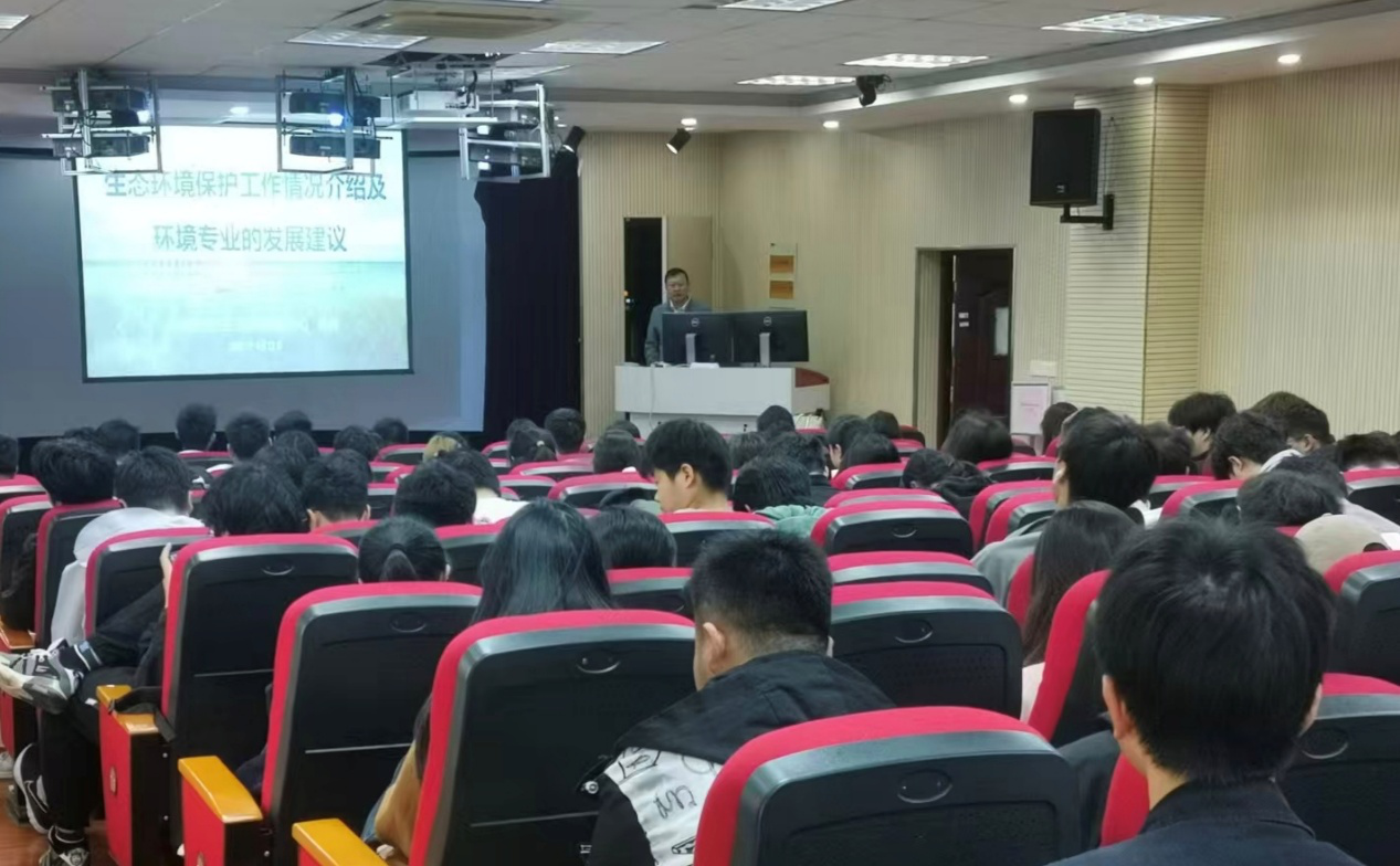为深化新时代大学生生态文明教育,彰显环境学科专业魅力,4月13日,资源环境学院在F411报告厅举办了环境学科系列讲座。安徽省安庆生态环境监测中心主任叶伟、高级工程师叶伟应邀作"安庆市生态环境保护工作情况介绍及环境专业的发展建议"主题报告,2023级全体环境专业学生现场聆听。