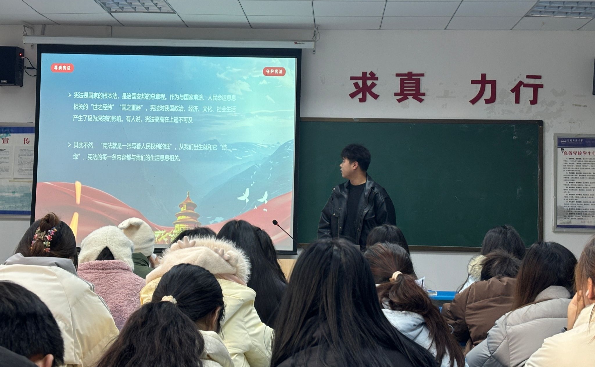 为了增强大学生的法治观念和规则意识,12月18日,2024级旅游管理(对口)一班于F205召开“国家宪法日学习教育”主题班会,会议由辅导员杨煜主持,本班级同学全员参加。