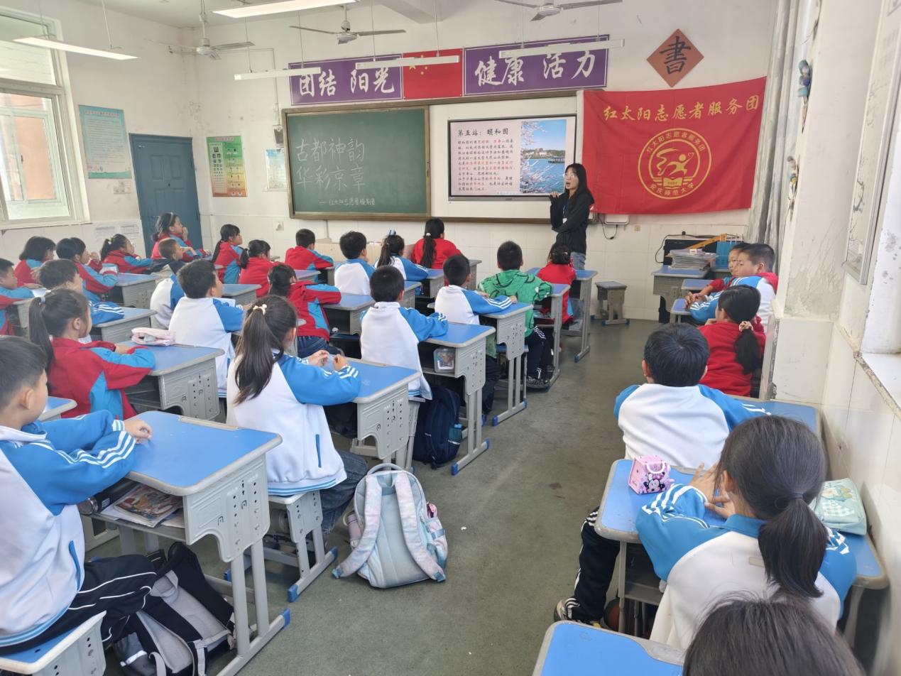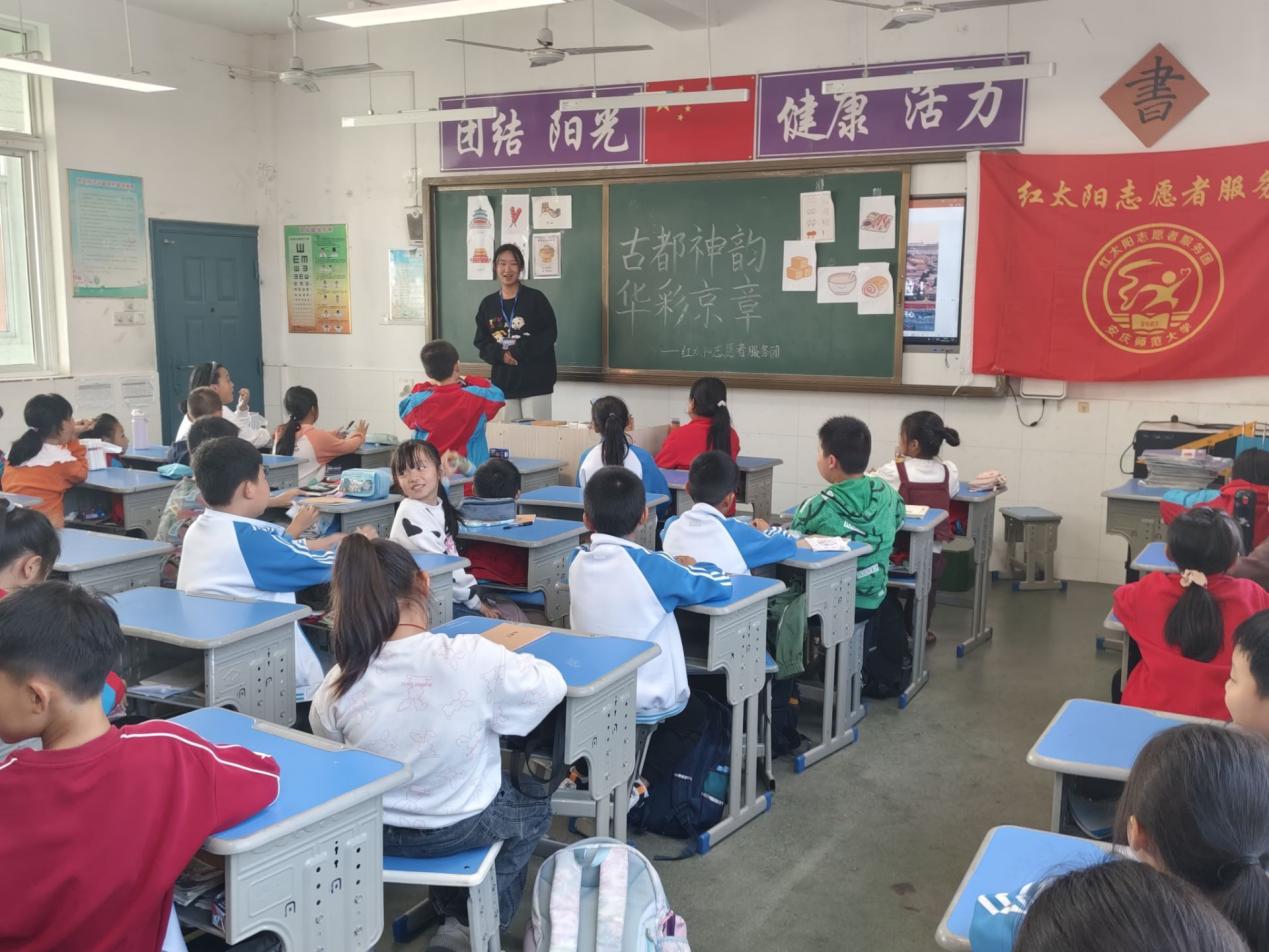 北京,一座承载着三千多年历史的古都,它犹如一颗璀璨的明珠屹立在中华大地上。它是中国政治中心、文化之都,是科技创新的前沿阵地,也是国际交往的重要窗口。它以自身独特的魅力,吸引着五湖四海的人为之驻足。为让同学们熟悉这座兼具深厚历史与现代繁华的都市,资源环境学院红太阳志愿者服务团于11月13日联合十里中心小学开展“古都神韵,华彩京章”主题活动。