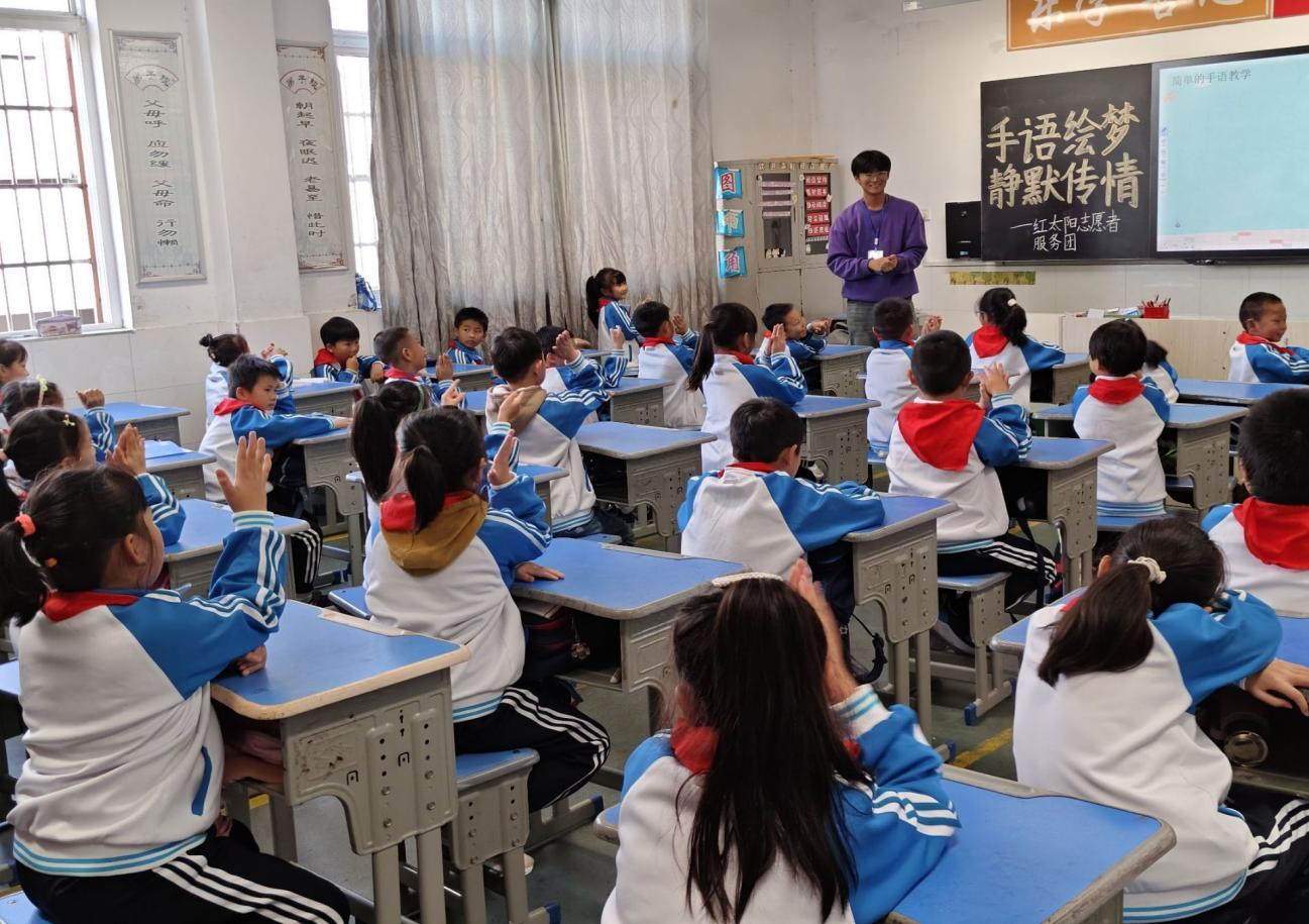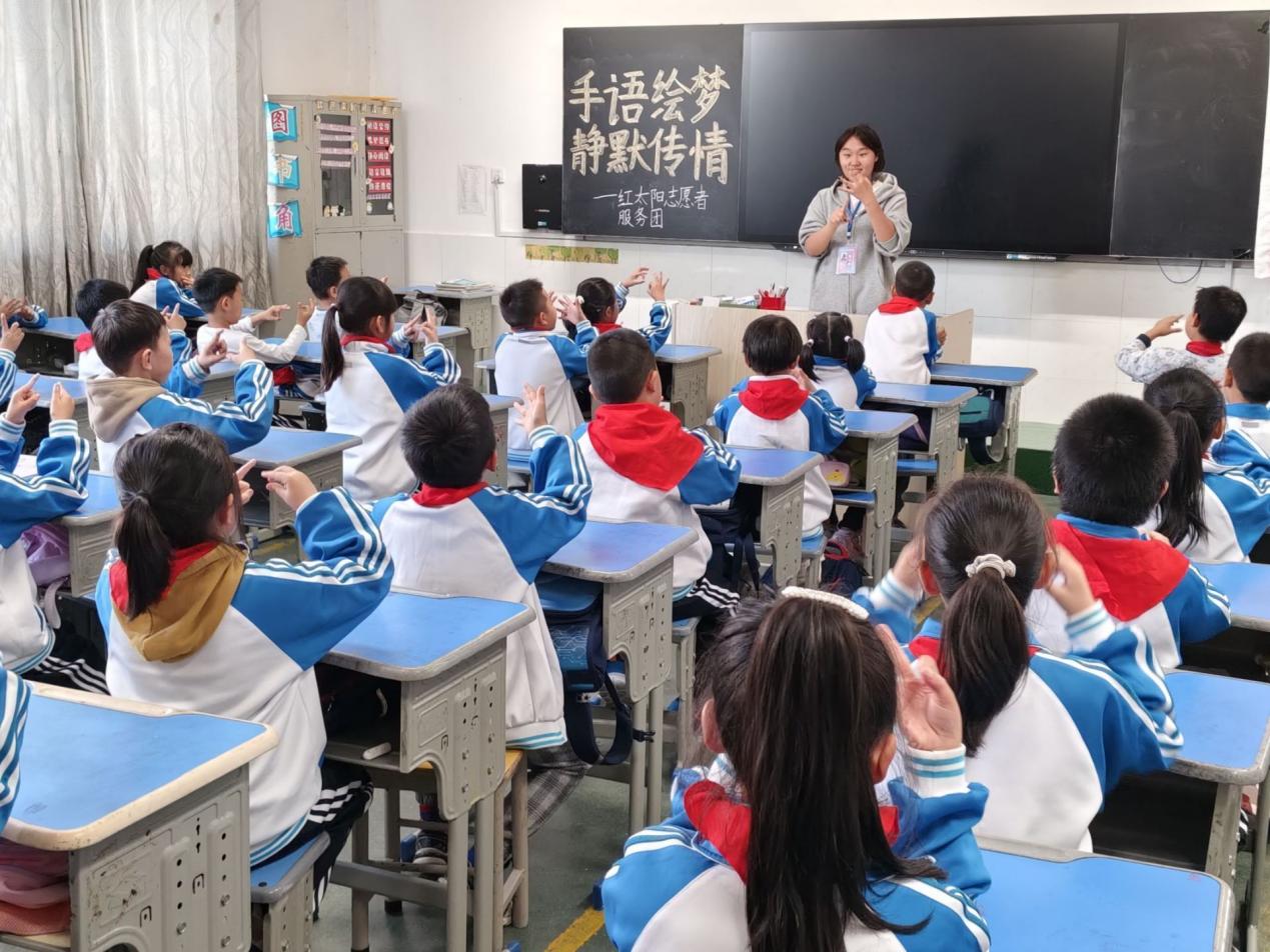 手语,是聋哑人交流的独特语言,如同无声之桥,连接着他们与外界。在我们的生活里,有这样一群特殊的人,他们乐观向上、坚强勇敢,虽身处无声世界,却始终以积极的心态面对生活。10月30日,资源环境学院红太阳志愿者服务团联合十里小学开展“手语绘梦,静默传情”主题活动。