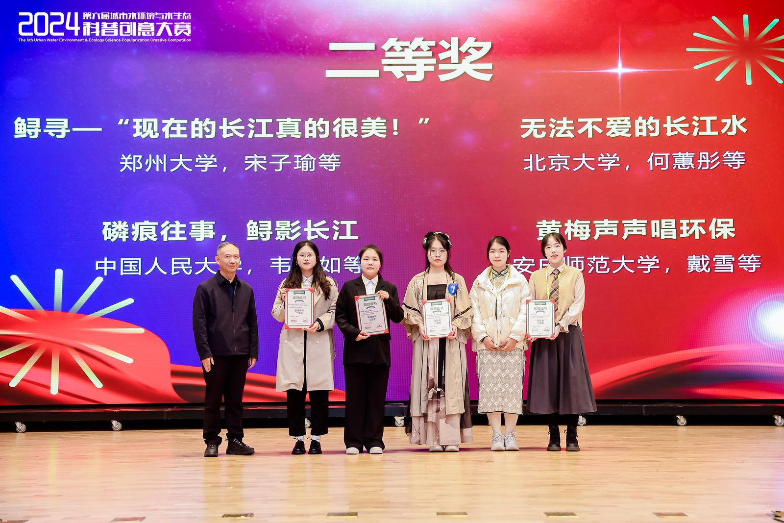 近日,第六届城市水环境与水生态科普创意大赛在北京落下帷幕。历时9个月,四十余所高校近三百支队伍经过专家组初评、复评层层筛选,决出16支队伍前往北京参加现场总决赛。经过激烈角逐,我院陈书琴教授与黄梅剧艺术学院江爱华教授共同指导的学生作品《黄梅声声唱环保》(戴雪、杨若梅、杨梦怡、牧伟、周地、陈雅琳、张阳阳),荣获第三名二等奖,与北京大学、中国人民大学等队伍一同登台领奖。