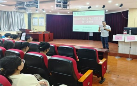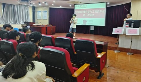 2024 年 8 月 31 日晚,2024级环境科学与工程类专业在F411召开入校后的第一次班会,辅导员金力航主持会议,专业全体学生参加会议。