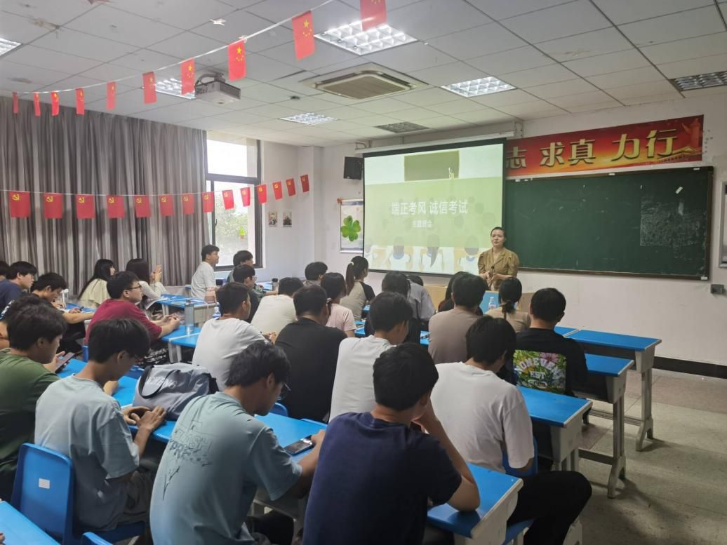 汪翘楚结合《学生手册》分析了考试舞弊的严重后果,要求同学们应认真备考,诚信赴考,并严格遵守考试纪律。此外,汪翘楚告诫同学们务必要深刻认识毒品对个人、家庭、社会的严重危害,了解涉毒的法律后果,应当自觉抵制毒品、远离毒品,当好禁毒的参与者、宣传者。