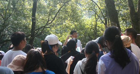 在庐山博物馆,同学们利用庐山地形沙盘模型学习了庐山五岭四谷的地形大势和地层概况;在王家坡现场讲解冰斗、冰川漂砾和冰川U型谷特征,学习了冰川和非冰川学派对庐山地貌成因解释的学术观点,引发了同学们的热烈讨论;在锦绣谷观察学习河流袭夺,在含鄱口旁观察冰川作用的痕迹,在仙人洞学习背斜核部发育纵张节理和X节理,让同学们在大自然中通过实例分析来检验所学理论知识。实习沿途,同学们学习了植被种类及分布特征。在月照松林、日照峰、黄龙潭等植被茂密繁多的地方,学生辨认植物并观察植被的分布特征,组织各实习小组通过样方调查归纳植物种类,了解植物的分布规律并采集制作植物标本。