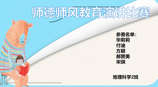 5月6日下午,2019级地理科学(2)班以“如何成为有师德的人?”为主题举办了线上演讲比赛。参赛同学结合着自己的亲生经历和对师德的理解诉说着师德的重要性。在优秀师德征文比赛中,地理科学2019级(2)班蒋传惠同学在作品中写到“为人师表先当以德服人,每一位人民教师都应以身作则,用自己辛勤的汗水呵护祖国的明天与未来。”地理科学专业其他班级也组织了类似活动。