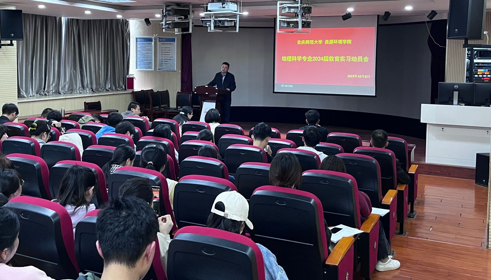 2023年10月8日,我院2020级地理科学专业在F411召开毕业实习动员大会。学院副院长金宝石、教育实习指导老师刘峰、刘运明、张鹏飞等以及2020级地理科学专业全体学生参加了动员会。