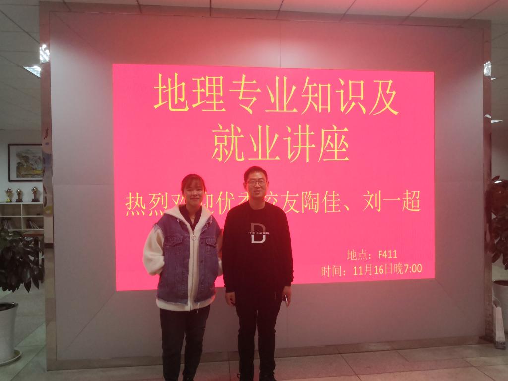 11月16日晚,我院在F411报告厅召开了地理科学专业教育报告会。本次报告会邀请地理科学专业优秀校友陶佳和刘一超进行主讲。参加本次报告会的有我院2019级地理科学专业的全体同学和部分地理科学专业高年级学生。
