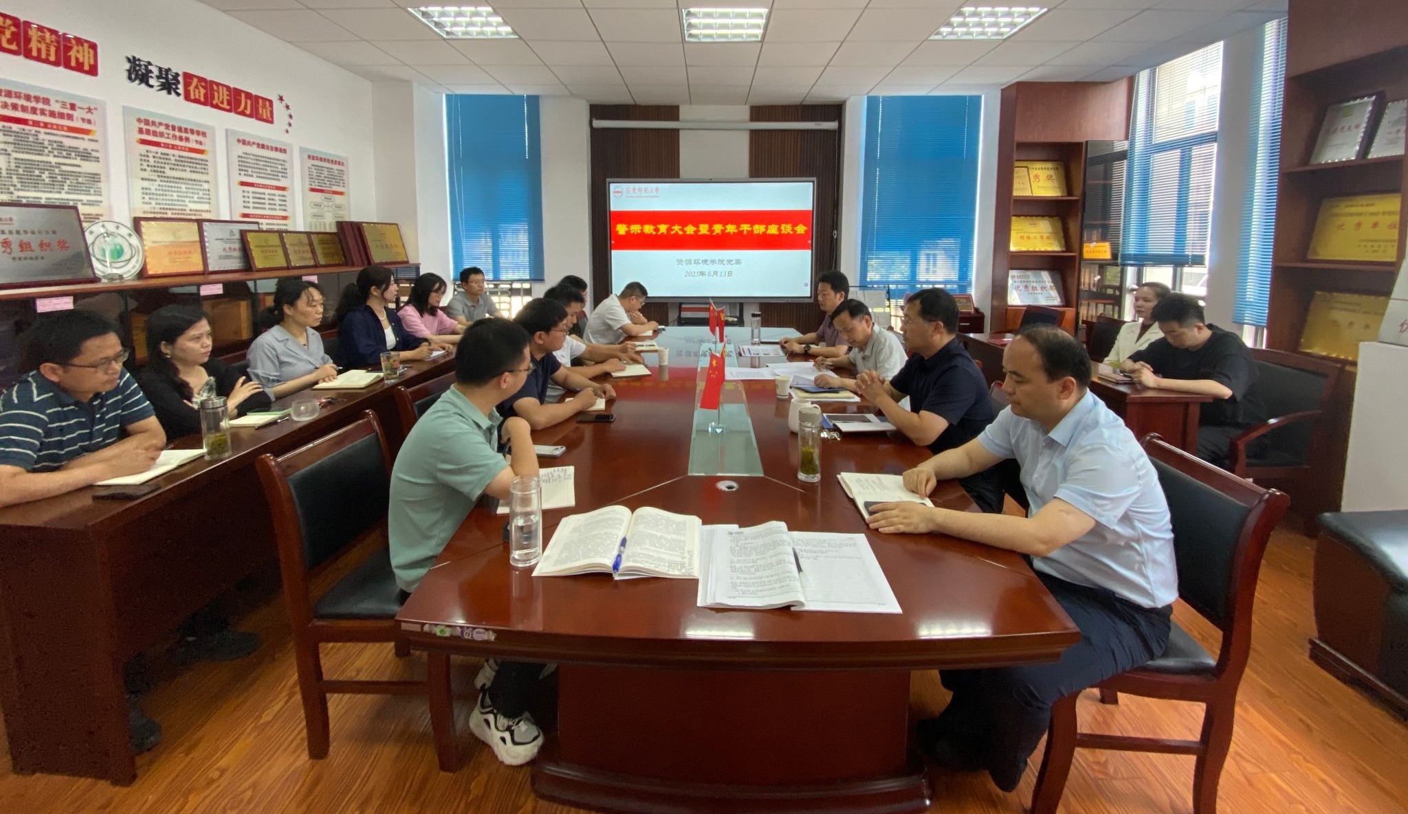 6月13日,资源环境学院党委召开警示教育大会暨青年干部座谈会。会议由资源环境学院党委书记夏斐主持,班子成员、纪委委员、科级干部、各党支部书记、教研室主任参加会议。