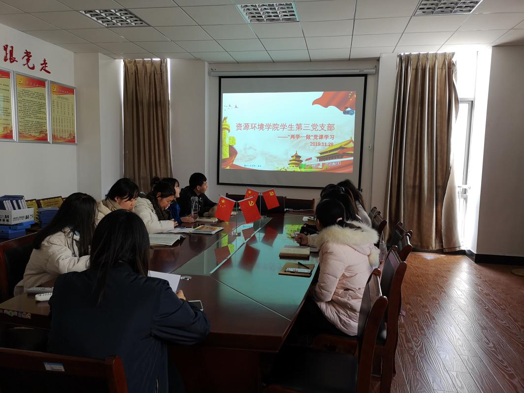 11月28日下午,我院学生第三党支部在F316开展“两学一做”党课学习会,会议由支部书记陈小琳老师主持,支部全体成员参加了本次会议。
