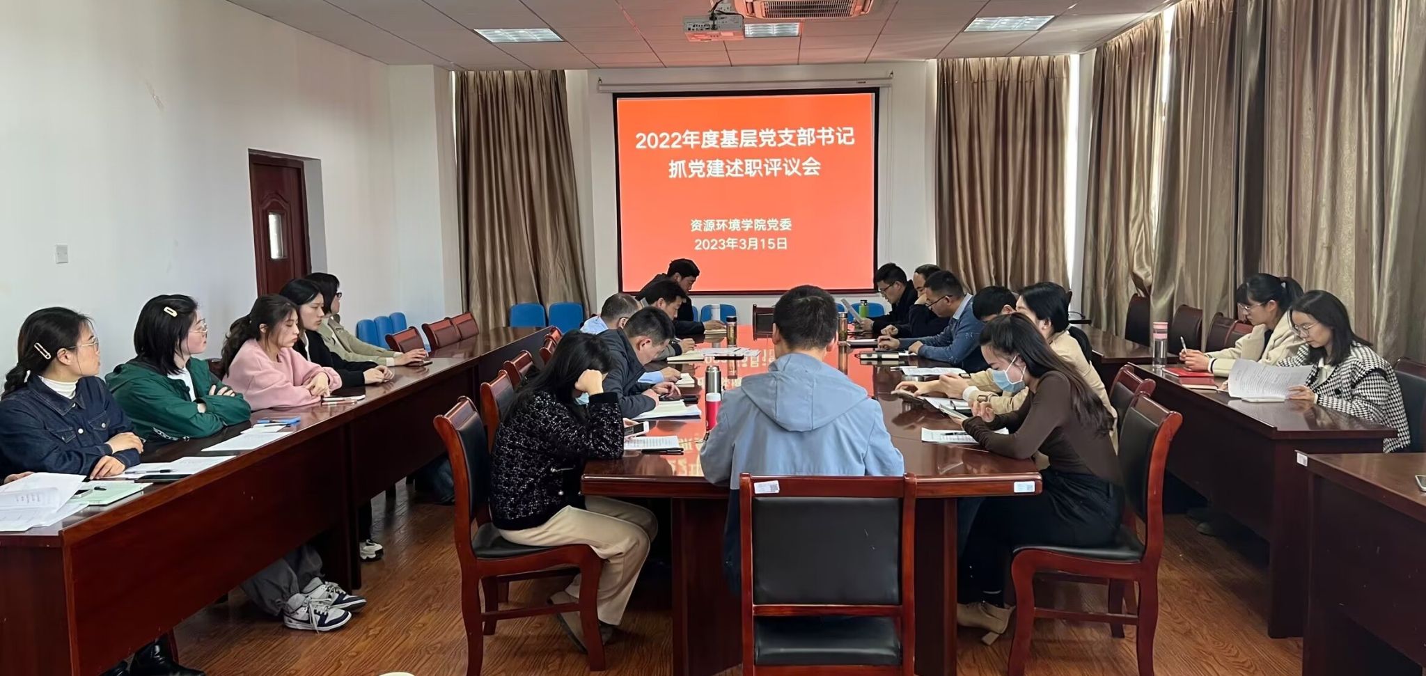 2023年3月15日,学院在F414会议室召开2022年度基层党支部书记抓党建设述职评议考核会,学院领导班子、党委委员、纪委委员、各党支部委员、支部书记及师生代表参加了本次会议,会议由学院党委副书记、纪委书记黄建平主持。