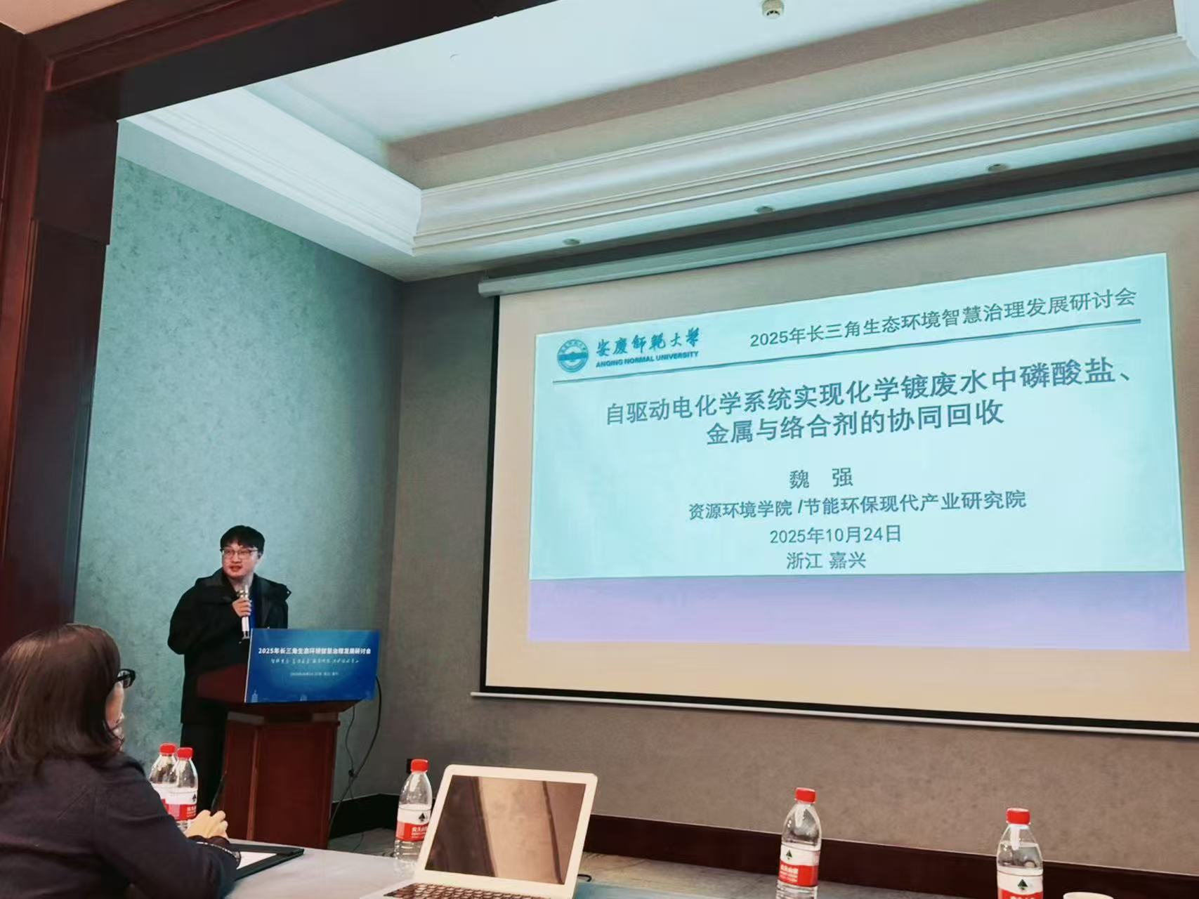 资源环境学院魏强副教授担任“流域综合治理与生态修复技术”分会场召集人,受邀在该分会场作题为“自驱动电化学系统实现化学镀废水中磷酸盐的选择性回收”的学术报告,系统阐述了自驱动电化学系统新技术用于处理化学镀铜废水,并实现对其中磷酸盐(P)、金属铜(Cu)和络合剂(如EDTA)选择性、同步回收。该技术不仅能解决化学镀铜废水的污染问题,还能同步回收高价值的磷、铜等资源,符合循环经济和可持续发展理念。