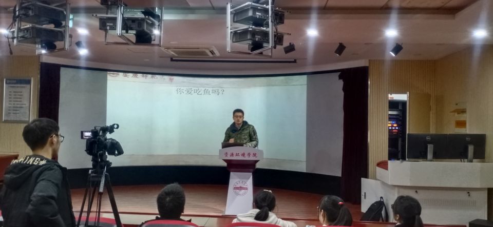 2021年12月8日下午,我院2021 级环境科学与工程专业全体学生及部分教师遵照疫情防控的要求,通过网络视频和现场的相结合的方式,参加了万安博士在F411报告厅做的主题为“长江与全面禁捕”的讲座。