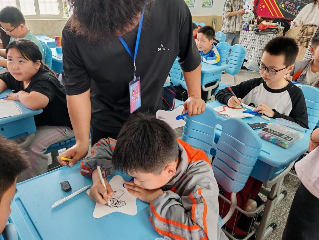 理论讲解环节过后,孩子们迎来实践课——纸扇绘画。有的小朋友画的李大钊戴着一副圆圆的眼镜,手里拿着书本,显得睿智而深沉;有的小朋友画的陈独秀则穿着长衫,一副儒者风范;还有小朋友画的鲁迅留着一字眉,昂首挺胸,充满自信。这些充满童趣的画作,不仅体现同学们对英雄的敬仰,还展现他们对五四精神的理解。
