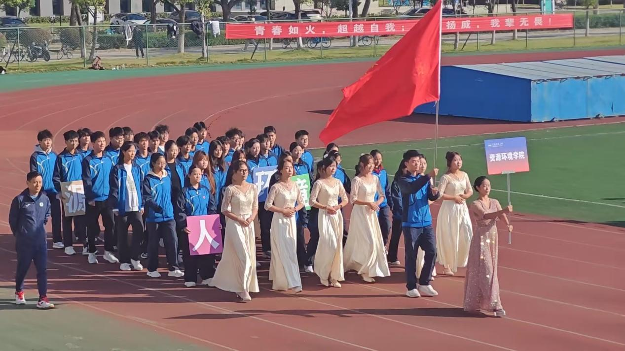 运动会开幕式上,各学院方队依次入场。资源环境学院方队身着统一蓝色队服,精神饱满、步伐铿锵。