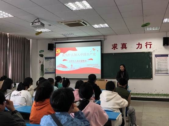 此次班会的主题是入党启蒙教育,杨煜老师从“历史和人民选择了中国共产党”、“端正入党动机”、“想要入党我应该怎么做”这三个方面对大学生入党问题进行了详细的阐述。她强调:在旧中国半殖民地半封建的社会性质下,只有中国共产党才能救中国,也只有中国共产党才能带领中华民族实现伟大复兴!党员的称号不是一种光环,而是一种为人民服务的责任感和使命感,在党和国家需要的时候,党员们挺身而出,发挥好先锋模范的带头作用,这是担当和奉献精神的最好体现。敢于担当、无私奉献,这是共产党员的义务,也是我们国家不断发展和进步的动力。大学生入党,需要同学们本着为大家服务的精神去积极参与班级活动,争取为班级建设贡献出一份力量;要做到品学兼优,从思想上到行动上带动班级更多的同学积极向上。想要入党就得接受党的考验,只有意志坚定、不畏困难、勇往直前的同学,才能真正成为一名合格的共产党员。