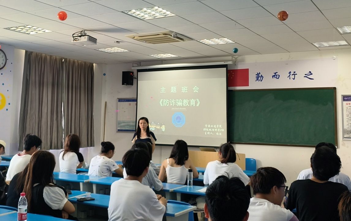 本次班会杨煜老师结合了大学生群体的特点,重点从购物诈骗、兼职找工作诈骗、网络交友诈骗三个方面进行展开,主要围绕在校大学生的受骗案例和受骗后的处理方式进行分析,告诫同学们要牢固树立安全意识,加强安全知识学习,不断提高自我保护意识和安全防范技能,用生动的案例为同学们上了精彩的“安全一课”。