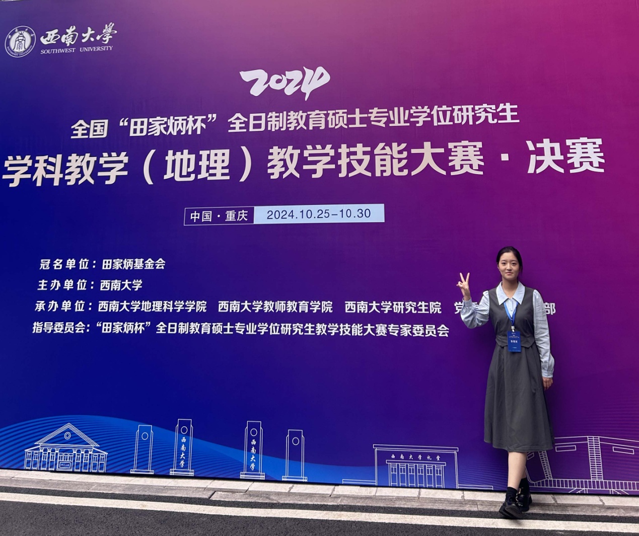 近日,全国“田家炳杯”全日制教育硕士学科教学(地理)专业教学技能大赛决赛在西南大学落下帷幕。资源环境学院学科教学(地理)专业研究生余康正同学荣获二等奖,金宝石老师获优秀指导教师奖,这是本专业学生首次进入此项赛事决赛并取得佳绩。